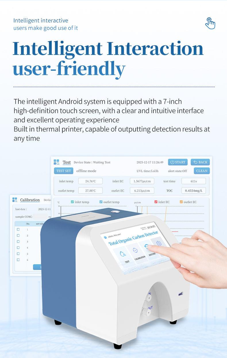 The TOC analyzer (conductivity method) is designed specifically for the detection of high-purity water quality. The instrument adopts advanced differential conductivity detection technology to efficiently convert organic carbon in water samples into carbon dioxide through ultraviolet oxidation, and accurately measure the conductivity changes caused by it, thereby achieving precise and rapid analysis of TOC content.
